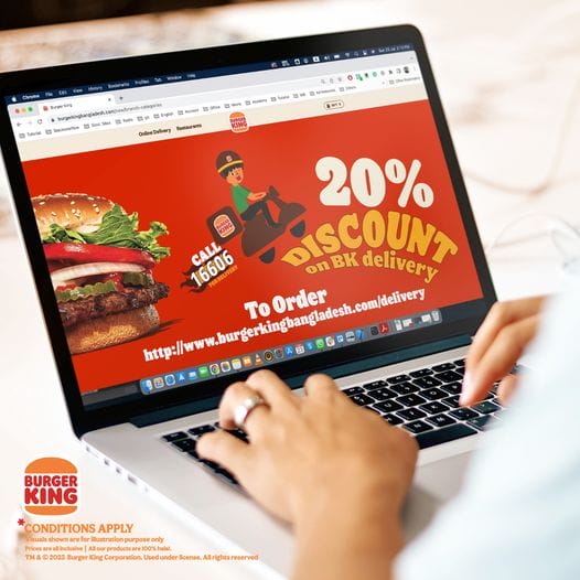 Looking for a mouthwatering bargain? Order from Burger King’s website or call 16606 and get 20% off on your favorite menu items, delivered at your doorsteps.