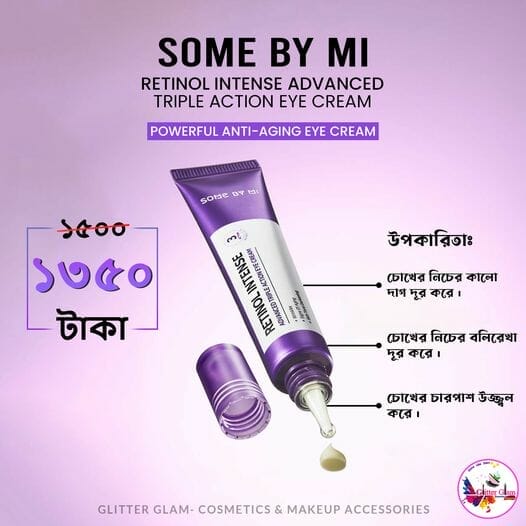 Discover the mysterious formula behind everlasting beauty with the groundbreaking “SOME BY MI Retinol Intense Advanced Triple Action Eye Cream.” Get your hands on a special deal at Glitter Glam – Cosmetics & Makeup Accessories where you can now purchase these amazing products for a limited time at a discounted price of TK.1350. Don’t miss out on this incredible offer!
