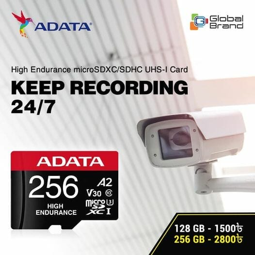 Experience the unparalleled durability of Adata High Endurance microSD Cards designed for Surveillance Cameras – your reliable ally in capturing every precious moment. With Adata by your side, never let a single moment slip away. Now, seize the opportunity to own one of these remarkable cards for as low as TK.1500, exclusively at Global Brand Pvt. Ltd.