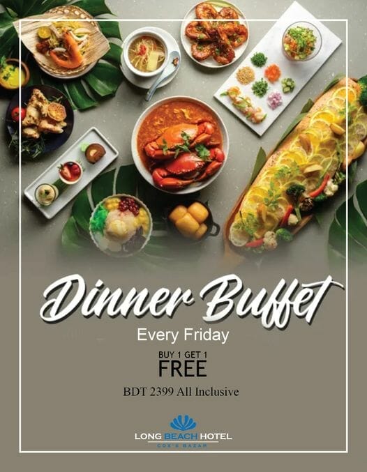 Enjoy an international buffet dinner with flavors from across the globe- Continental, Western, Seafood, Italian, Indian & Chinese Delicacies, local homemade spicy dishes and so much more. You will enjoy the best Buffet Dinner deal in Cox’s Bazar!