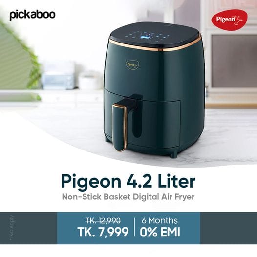 Buy Pigeon 4.2 Liter Non-Stick Basket Digital Air Fryer from Pickaboo at a reduced price of Tk.7,999.