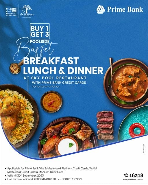 Prime Bank Offers Buy 1 Get 3 offer at Six Seasons Hotel (September 2023)