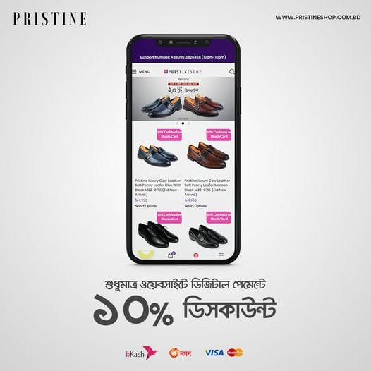 Get 10% discount on all web purchases done through digital payment at PristineShop.