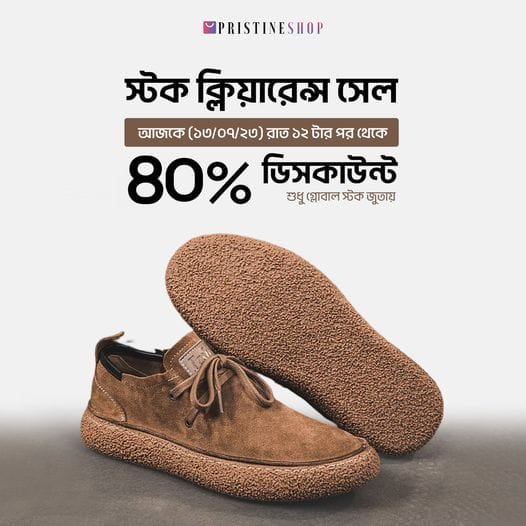 PristineShop Offers 40% Discount (July 2023) July 18, 2023 / Fashion PristineShop offers a clearance sale of 40% discount on Global Stock shoes. Validity: Till Stock Ends Call: 09613-826466 Facebook Page: https://www.facebook.com/PristineDTC Website: https://www.pristineshop.com.bd/ Outlet Locations: • Banani Flagship Store: Shop 5, Lift 3, Banani Super Market, Kemal Ataturk Avenue, Banani Dhaka, Dhaka, Bangladesh • Baily Road Flagship Store: Shop 5, Lift 3, 143/2 AQP Shopping Mall, Opposite of Fakruddin Biriyani & Cafe, New Baily Road, Dhaka 1217, Bangladesh