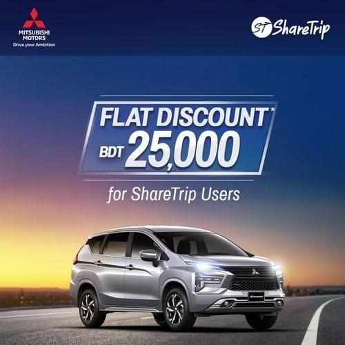 Introducing the Mitsubishi Xpander, now with an exclusive discount of up to TK.25,000 for ShareTrip users. Furthermore, enjoy a 12% discount on servicing and a 5% discount on genuine Mitsubishi motor parts. Don’t miss out on this opportunity!