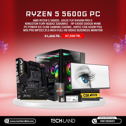 Tech Land BD is currently slashing the price of their AMD RYZEN 5 5600G PC to an irresistible TK.47,500!